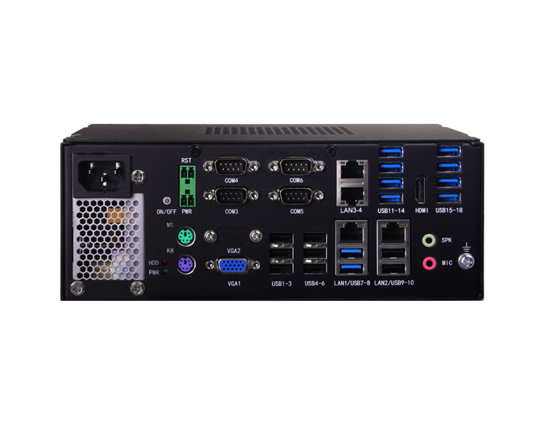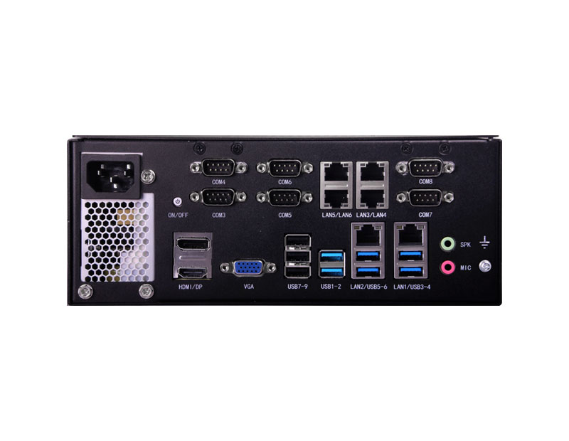 支持Intel 8/9代 Core i3/i5/i7/i9 LGA1151 處理器,6*LAN,4*USB3.0,5*USB2.0,6*COM,260mm x 176.6mm x 130mm (W x D x H)