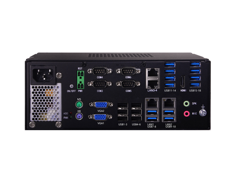 支持Intel 6/7代 Core i3/i5/i7 LGA1151 處理器,4*LAN,10*USB3.0,8*USB2.0,4*COM,230mm x 190mm x 90mm (W x D x H)